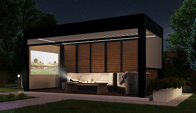 Превратите беседку или веранду в личный кинотеатр с любимыми фильмами. Полотно системы можно использовать как экран для проектора.